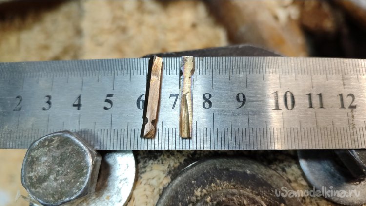 Нужной мне формы полукруглый резец из сабельной пилы не может прорезать самшит. Рабочая кромка сминается. Поэтому делаю из вольфрамосодержащего сплава Р18. Мне нужен резец с радиусом закругления рабочей кромки в 1.5-2 миллиметра, толщиной на расстоянии от жала в два мм не более 0,4 мм. Это получается около 11 градусов, понятно, что при таком маленьком угле заточки возможно выкрашивание рабочей кромки. Но я рискну. В случае невозможности работы, увеличу до 18 градусов, я уже делал такие, если без боковых нагрузок втыкать в дерево, то очень даже хорошо работает.