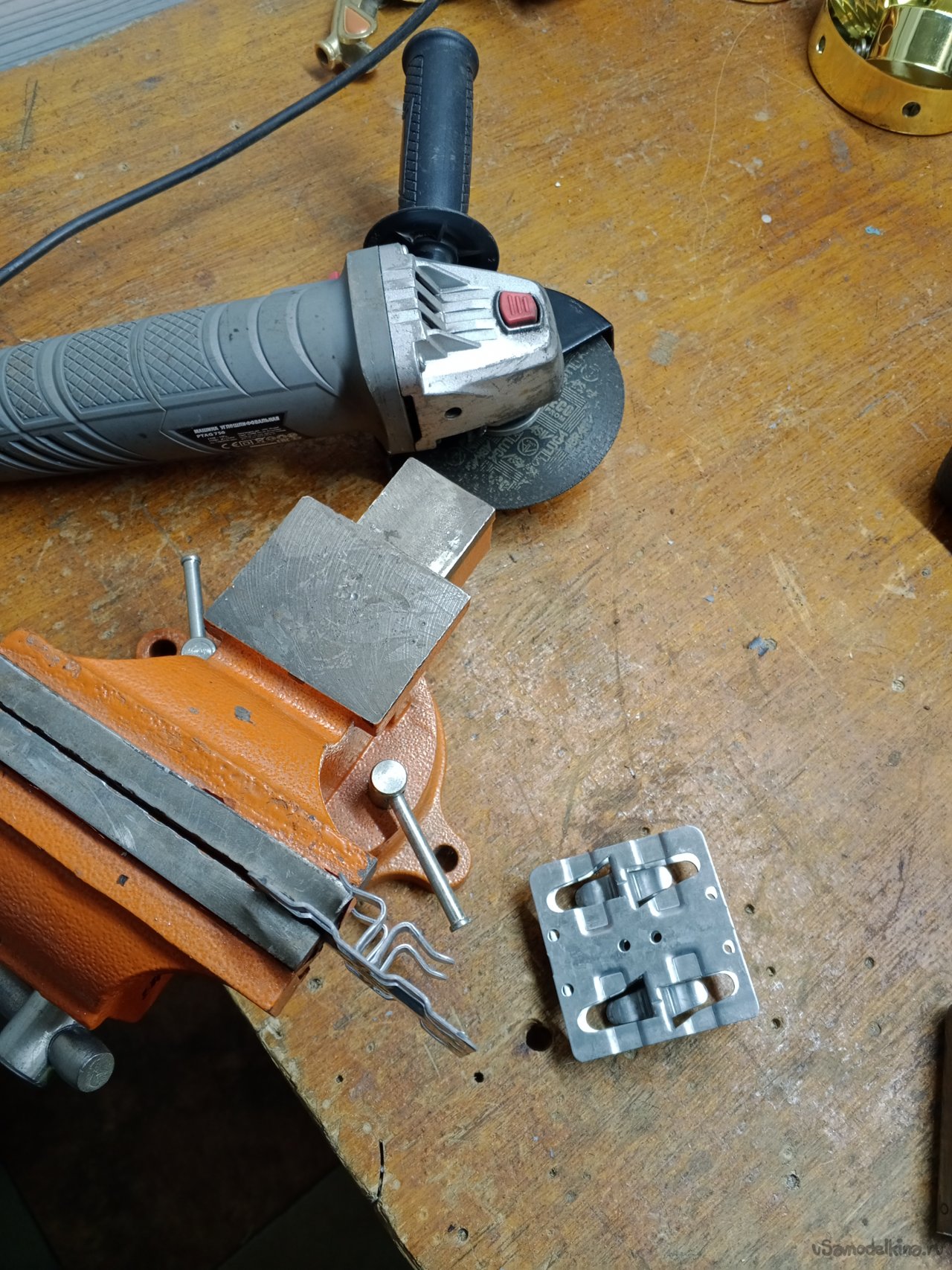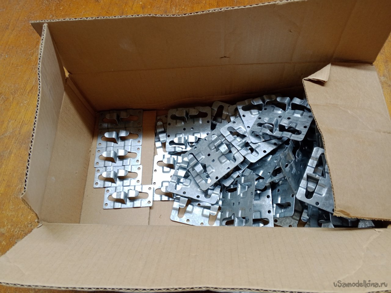 При помощи лазерного уровня разметил средний, вертикальный шов и «стартовый» нижний. Сделал заготовки «стартовых» кронштейнов, распилив «проходные» наполовину по горизонтали и просверлил отверстия для их монтажа. Закрепил первый ряд плиток, установил «проходные» кронштейны сверху, по уровню, на дюбель – гвозди.