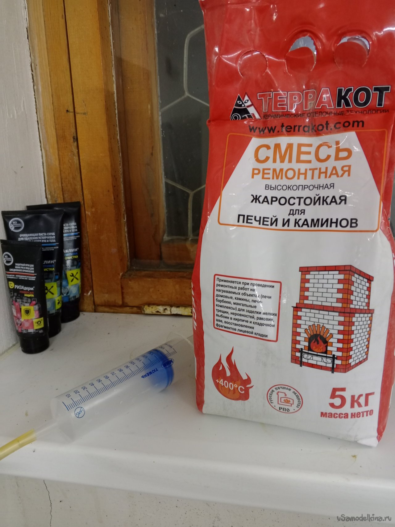 Замесил раствор из «ремонтной» смеси и при помощи большого медицинского шприца «забил» смесью зазор, между стеной и газоходом, в несколько этапов, после застывания предыдущего. Окончательно подровнял шпателем в конце. Раствор «схватился» хорошо, и труба «встала» крепко (до этого раствор был на гипсе и весь раскрошился, поэтому труба качалась). Несколько использований и газоход плотнее осядет на печной раструб из-за теплового расширения.