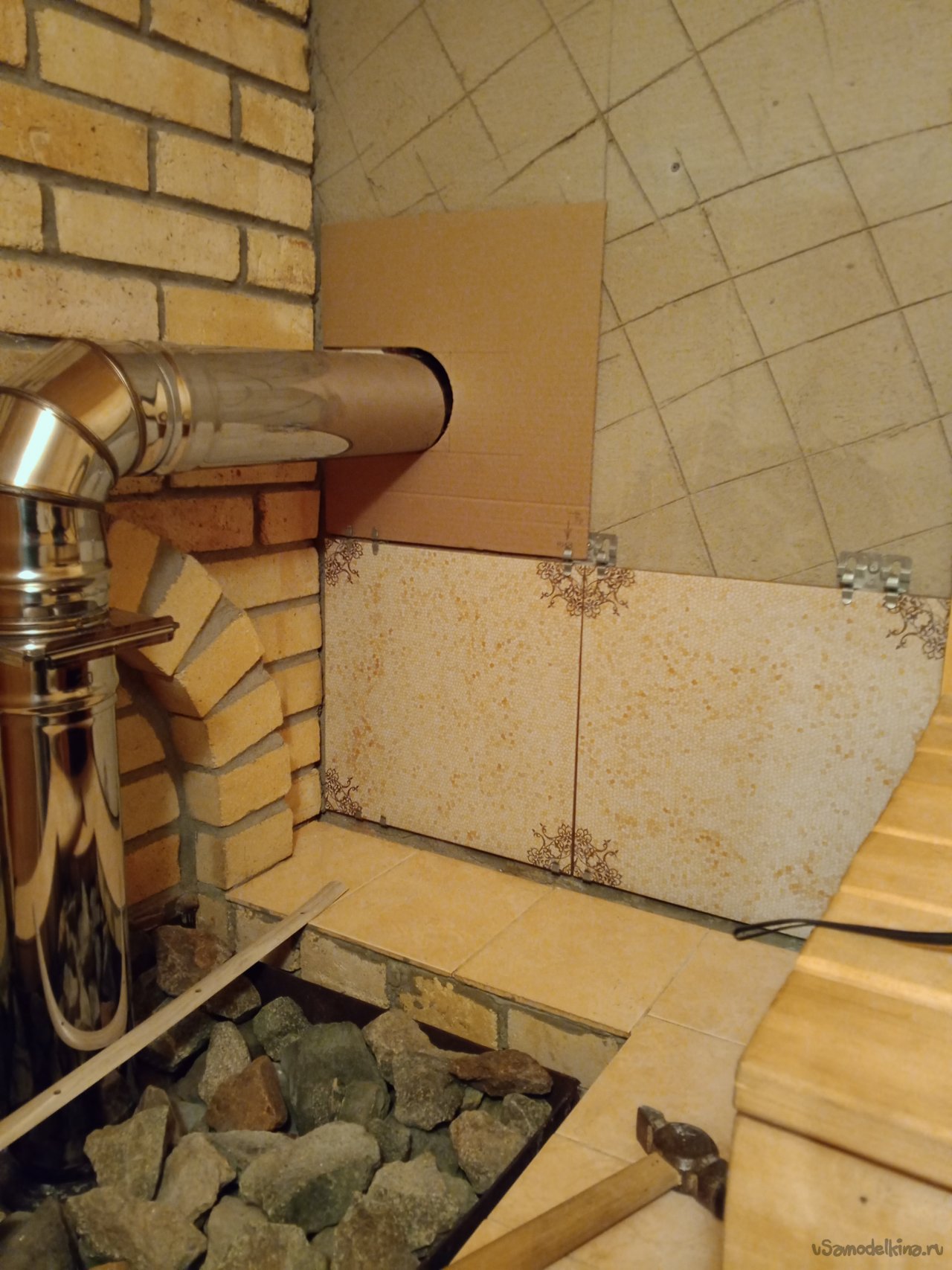 Решение внести изменения в конструкцию обшивки парилки, было принято после образовании на вагонке пиролиза. Вообще пиролиз, образованный на материалах вокруг печей очень опасен своими последствиями.