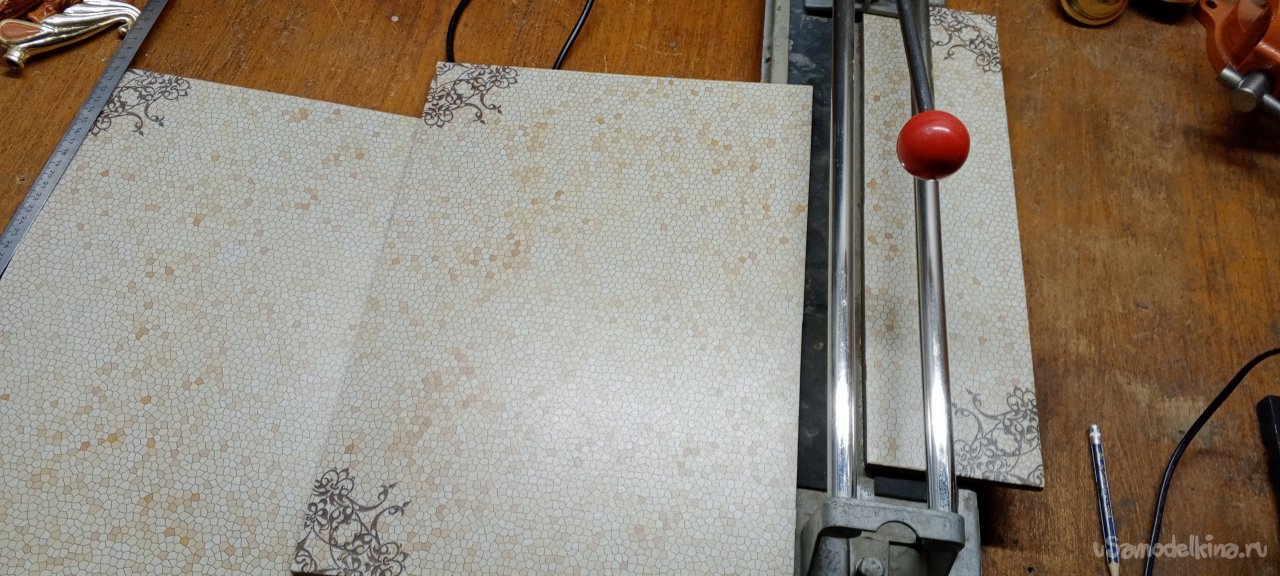 Для четвертого ряда, отрезал в размер две плитки, вставил в кронштейны, а верхнюю их часть закрепил деревянным плинтусом.