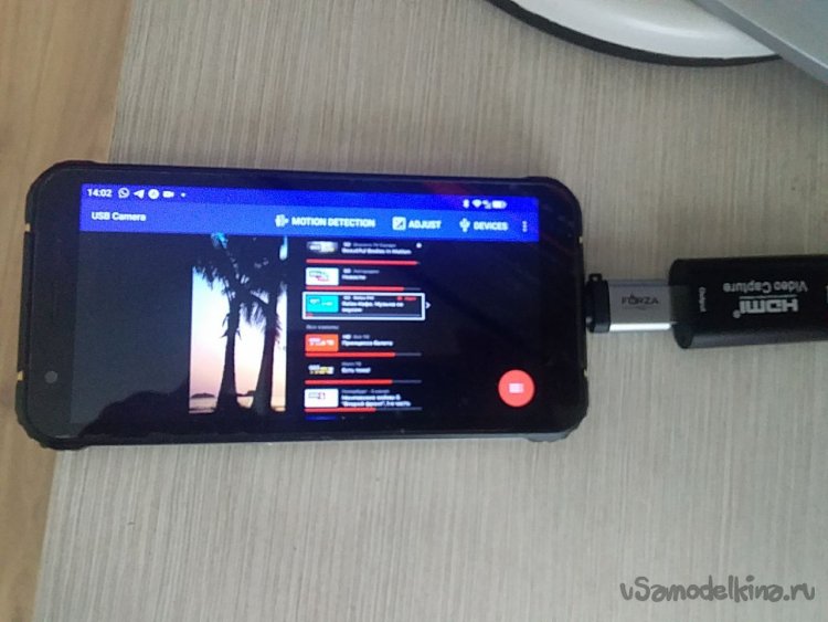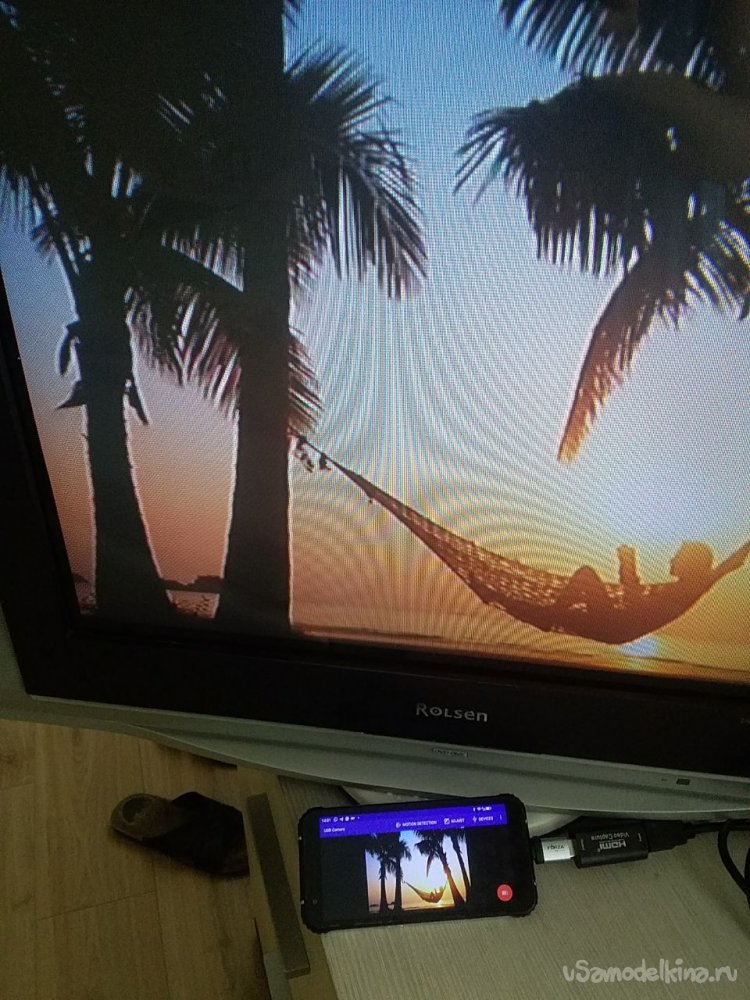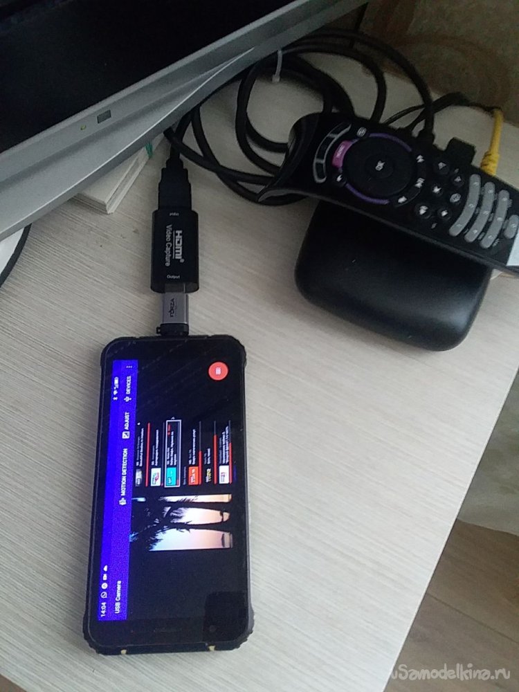 Смартфон есть у каждого. Пусть он телевизором и работает. У нашей телеприставки есть выход HDMI. Ищем конвертер HDMI-USB. Оно же карта видеозахвата. Навскидку на российском аналоге Алиэкспресса от 650 руб, может, есть и дешевле, но мне надо было быстро (1-2 дня). Чтобы USB воткнуть в смартфон, понадобится штучка под названием OTG-кабель, или переходник (мой случай). По-моему, около 100 руб такое можно купить везде. Не знаю, бывает ли такое для айфонов, а для нормальных телефонов два варианта: TYPE C (мой случай) или microUSB. Его втыкаем в гнездо телефона. Осталось найти софт для этого дела. Инет подсказал, что методом перебора разных приложений можно найти то, что будет работать именно на этой конфигурации. Мне повезло только с четвёртого раза, уже руки почти опустились. Моё приложение называется USB camera. Всё работает, я даже немного удивился. В моём случае телик старый, электронно-лучевой, он подключен к приставке через колокольчики. На современных телевизорах возможно понадобится изменить разрешение телеприставки на пониже, иначе изображение будет лагать. Ну и как продолжение банкета: судя из названия, можно так же подцепить USB камеру и изображение с неё смотреть на смартфоне. Возможно, кто-то ещё придумает применение этой комбинации. Видеоглазок, например, из старого смартфона или планшета. Камера заднего вида на автомобиль. Подойдёт теоретически любая веб-камера, у меня их из прошлого с десяток где-то лежит, пора расчехлять, пусть работают.