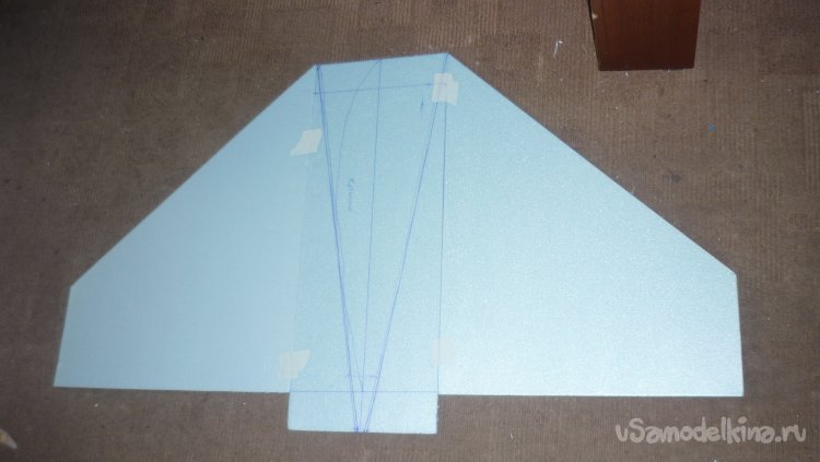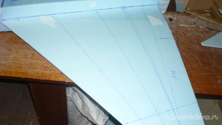 Начал с разметки и выкраивания нижней обшивки крыла вместе со вставкой по ширине фюзеляжа.