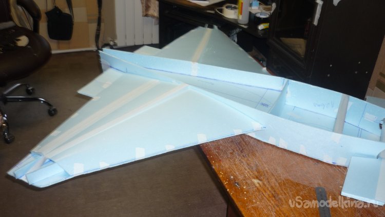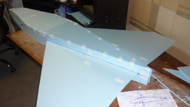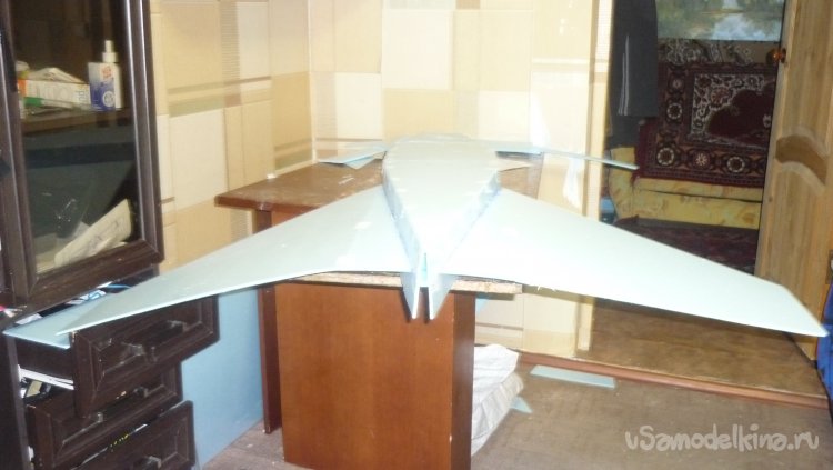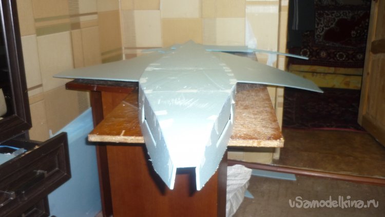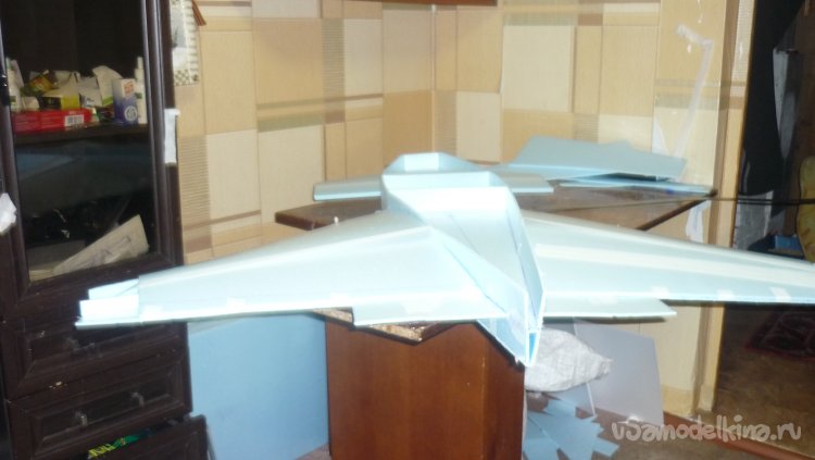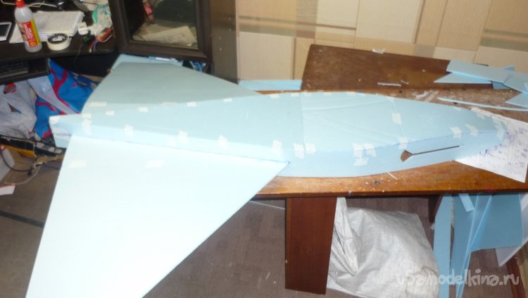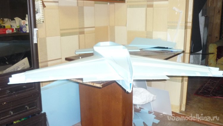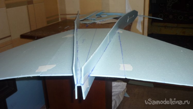 Вырезаю заготовки, склеиваю подвесные баки на концы урыльев, Монтирую.