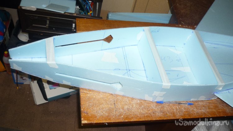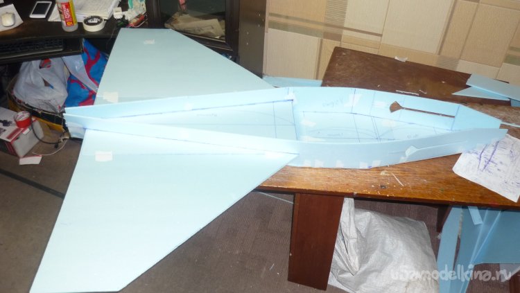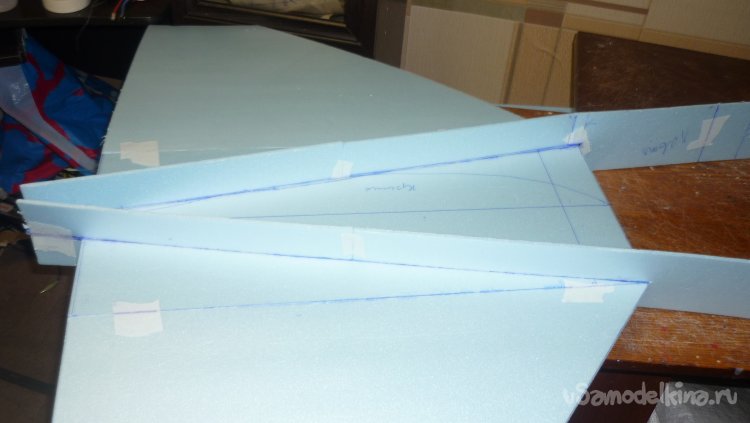Модель делаю из подложки под ламинат, толщиной 5 мм. голубого цвета.