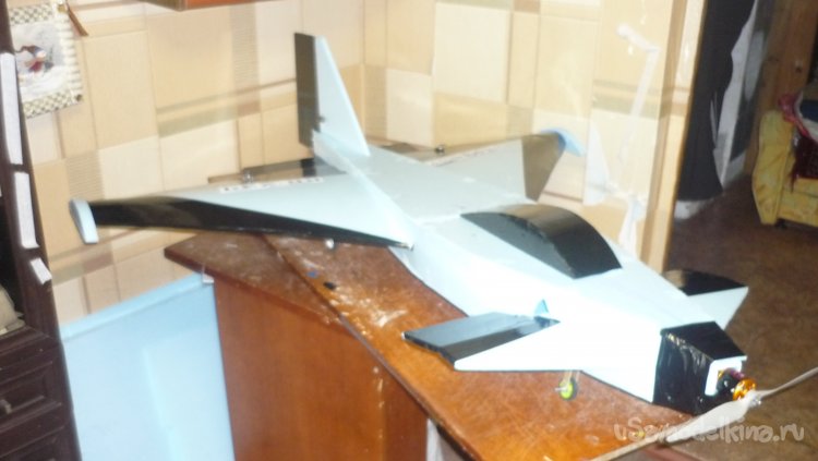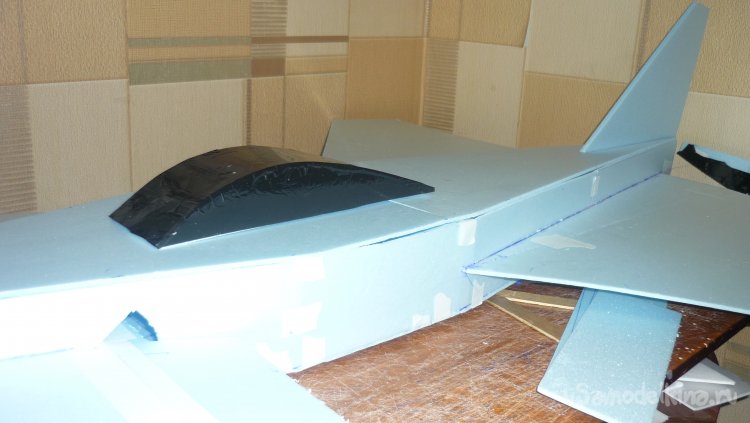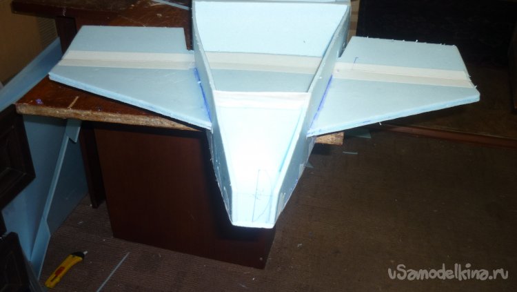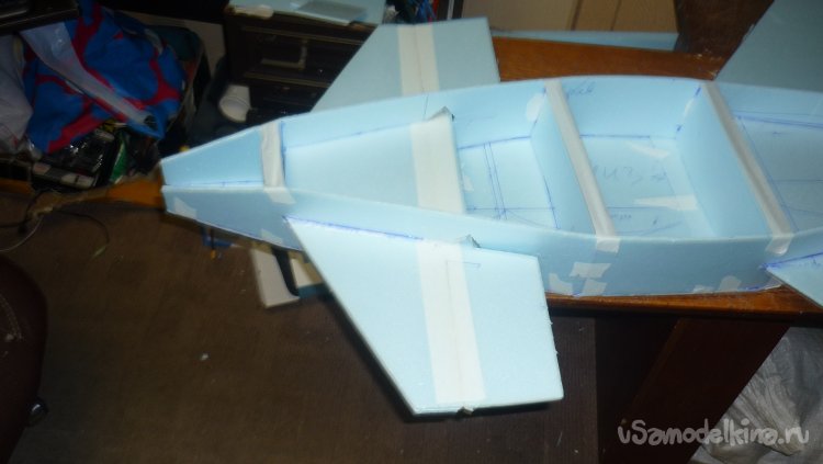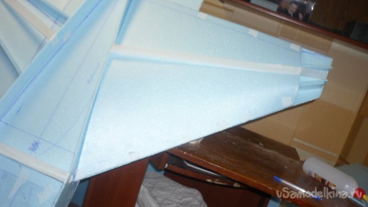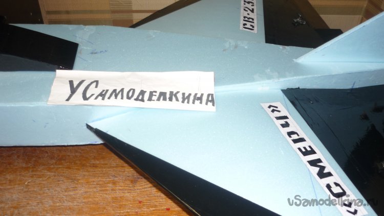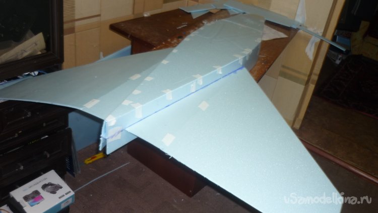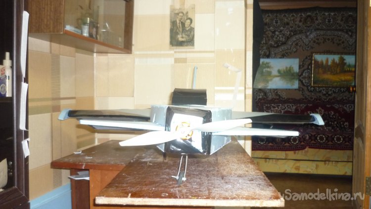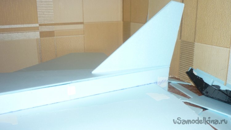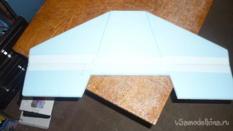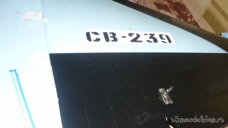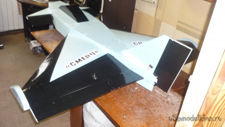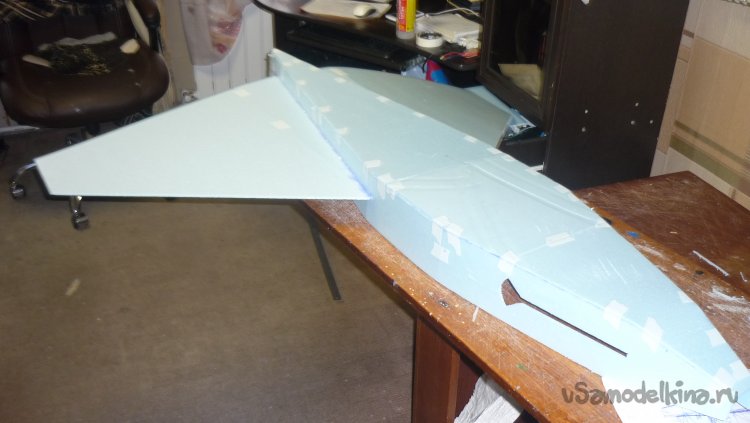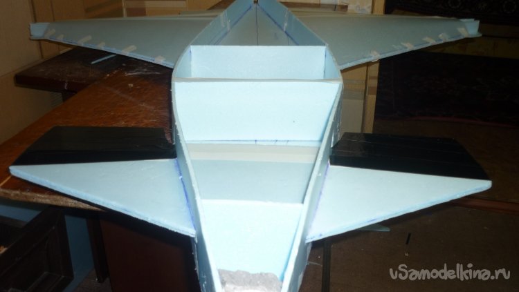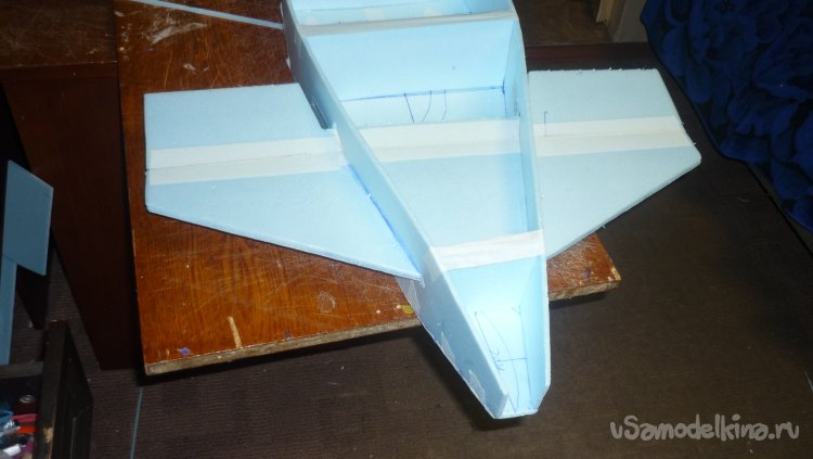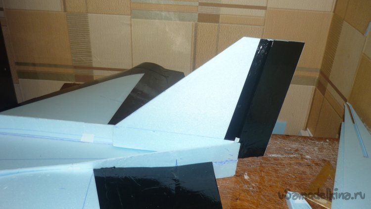 Навешиваю руль высоты и обтягиваю чёрным скотчем.