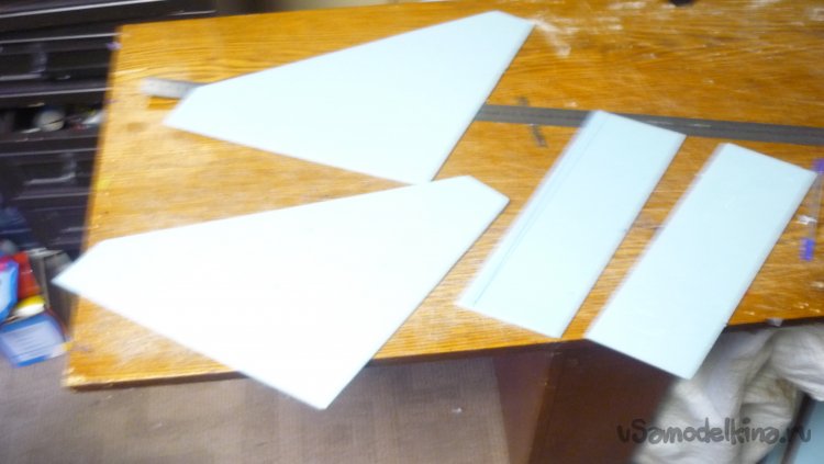 Вырезал заготовки для ПГО и руля высоты. Заготовки будут склеены в два слоя.