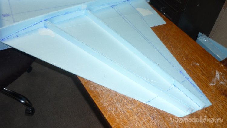 Размечаю места установки сервомашинок управления рулём высоты и элеронами.