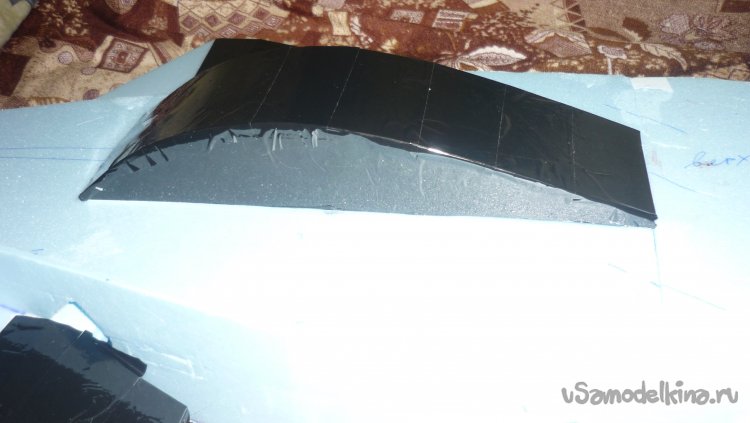 Вырезал заготовки для кабины, склеил и обтянул чёрным скотчем.