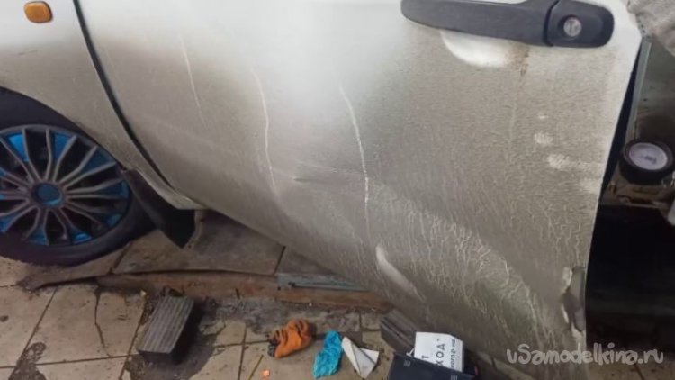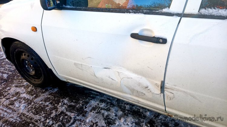 Немного предыстории. Недавно я попал в ДТП, еду себе по широкой улице Бухарестской в правом ряду, еду прямо на перекрёстке, и на самом его центре получаю удар в левую переднюю дверь. Пока среагировал, пока в тормоза нажал, пока остановились я и мой «партнёр», это получилось ровно посередине оживлённого перекрёстка Бухарестской и Салова, ехали мы оба от Софийской к Фучика. Но я ехал прямо, а мой «партнёр» решил повернуть направо из второго ряда. На мой вопрос, а как так получилось, он ответил, что был в полной уверенности, что я поворачиваю направо. Интересно, чем он руководствовался? Но дело было вечером, после работы мне ужасно не хотелось ждать ГАИ, а потом в ночи ехать на разбор, и я его отпустил с миром почти даром. К тому же, перекрёсток оживлённый, за время ожидания ГАИ можно было и повторно получить. Потом, конечно, когда узнал стоимость ремонта традиционными способами, с покраской, я об этом пожалел, но поезд уже ушёл. И решил я поискать в сети разные способы ремонта. Дверь открывается-закрывается нормально, значит, силовые элементы живы, а внешний лоск моему автомобилю двадцатидвухлетнего возраста не особо и нужен. И нашёлся в сети такой способ.