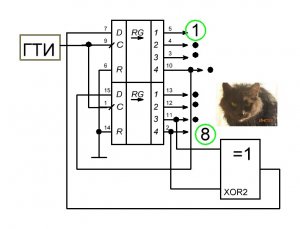 Поискав в интернете, я нашёл подходящую схему на известной ИМС CD4017 (или её отечественном аналоге К561ИЕ8).