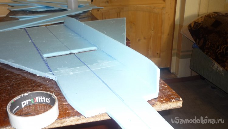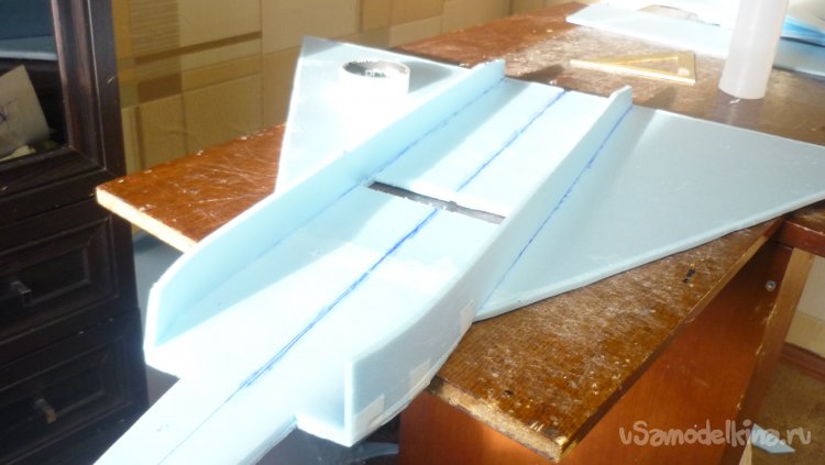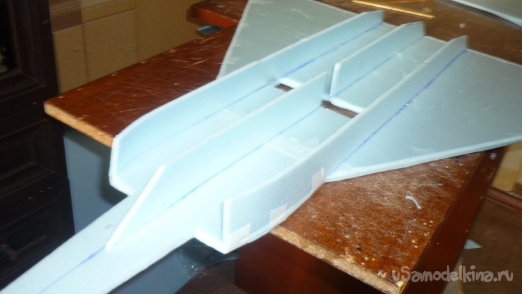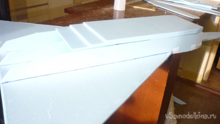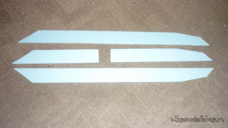 Выкроил и вырезал заготовки для киля с рулём направления.