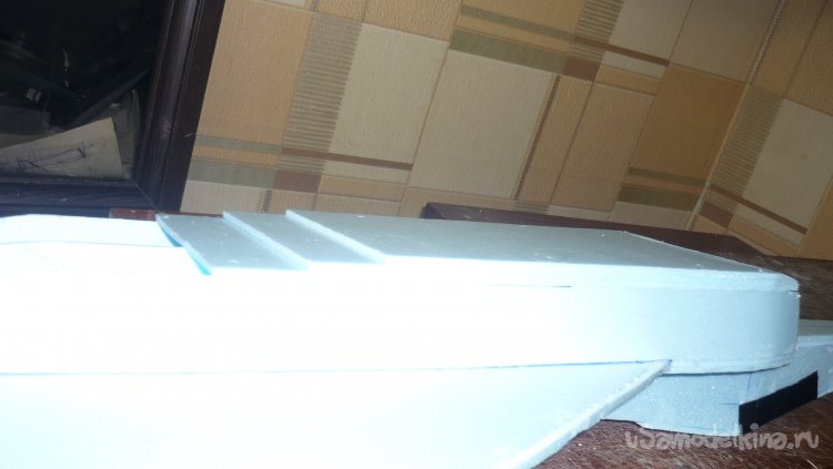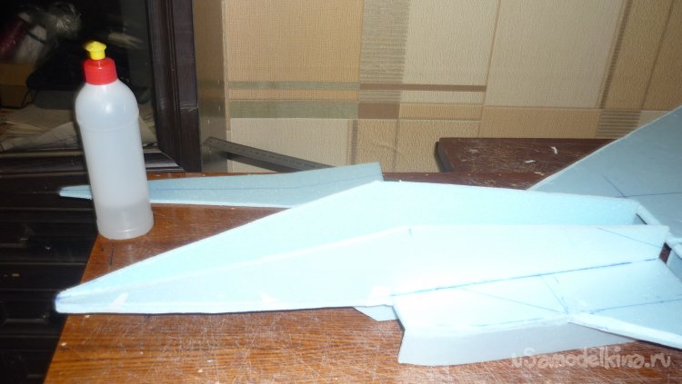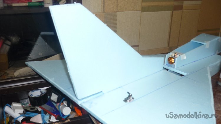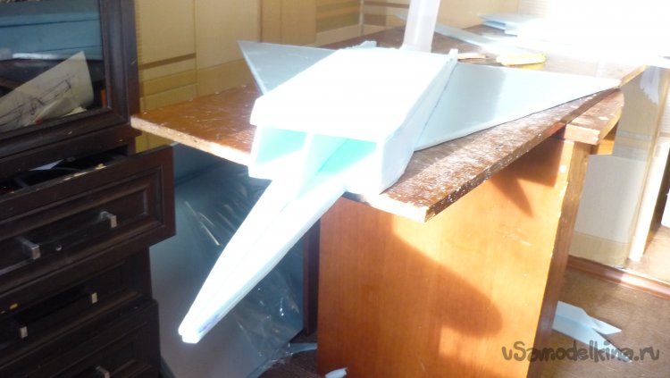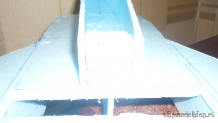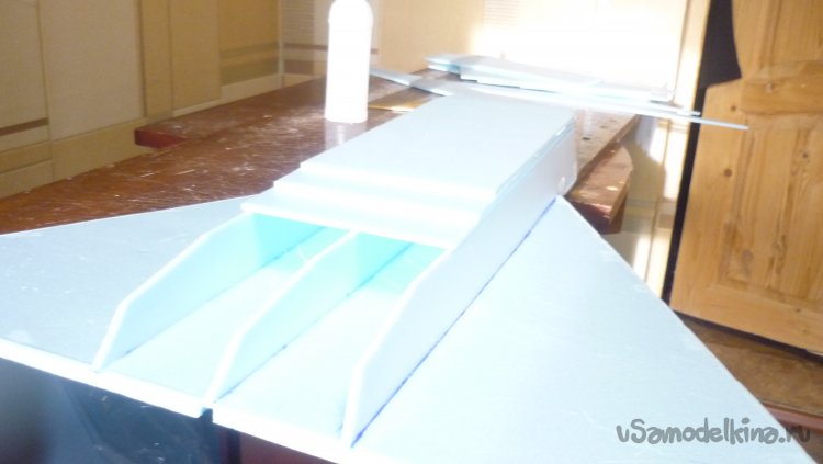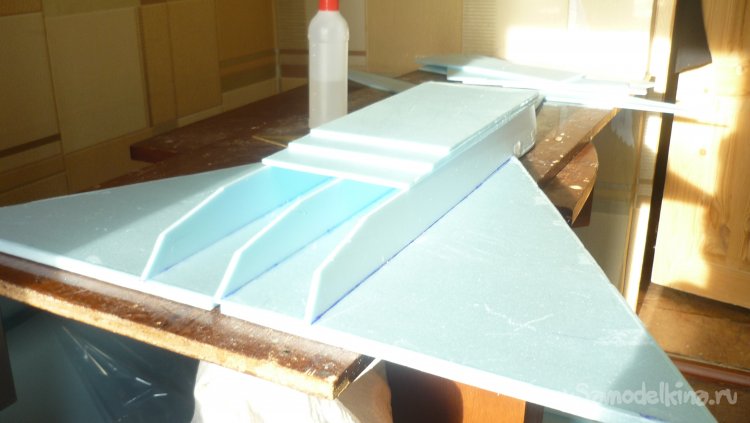 Начинаю монтировать боковые стенки воздуховода. По ним в дальнейшем, будут монтироваться провода от сервомашинок управления элевонами и руля направления.