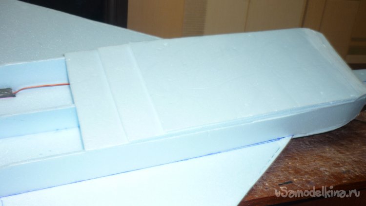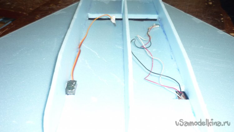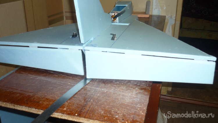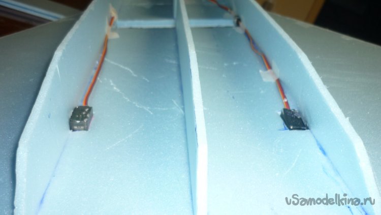 Размечаю и монтирую сервомашинки управления элевонами.