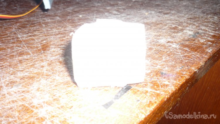 На него приклеиваю вырезанный из 3 мм. фанеры кружочек. На него будет крепиться мотор.