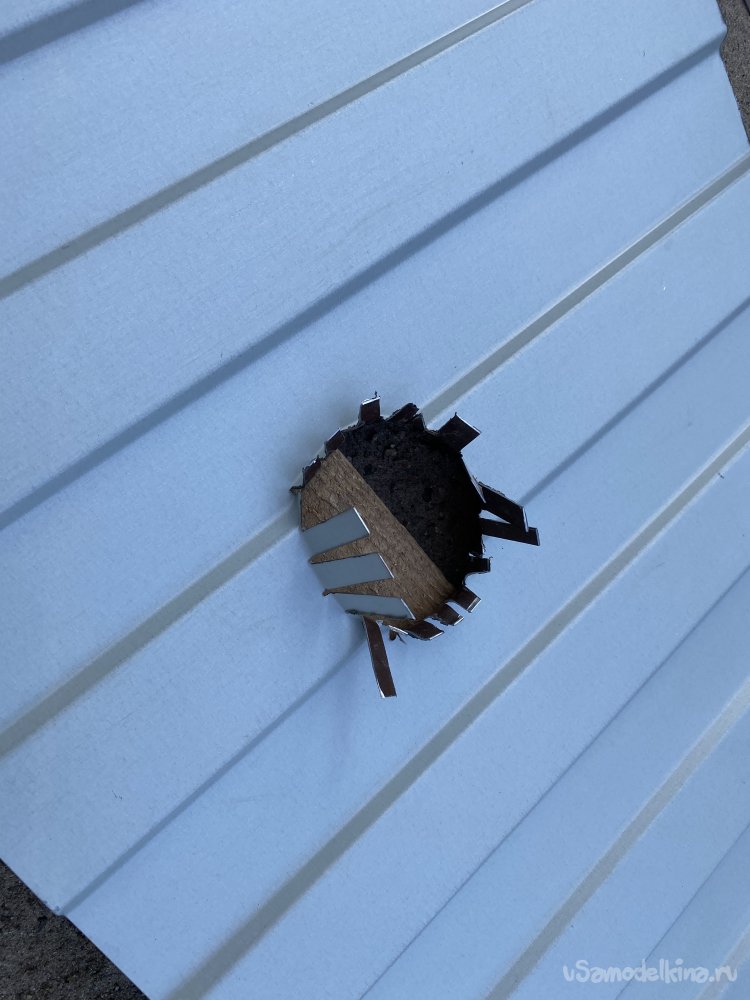 Отверстия под светильники вырезал болгаркой - нарезал сперва "дольками апельсина", потом отогнул внутрь и обрезал всё, что торчит: