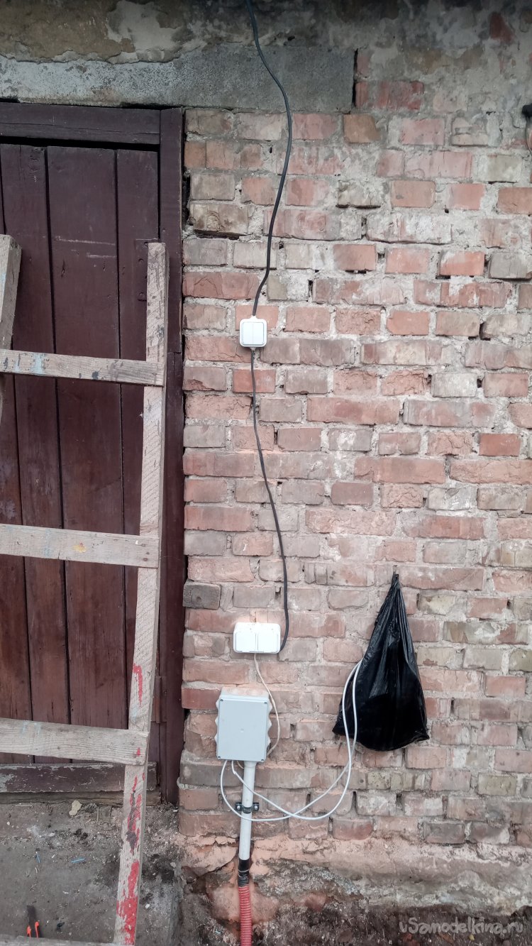 ...И вот сейчас у меня есть проходной выключатель и есть лишние жилы в кабеле! Правда, пришлось немного поколхозить, переделать его в наружный... Но это ж сарай! Внешний вид не важен!!