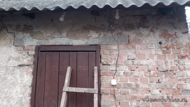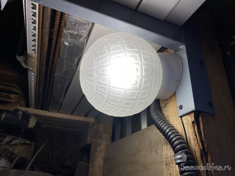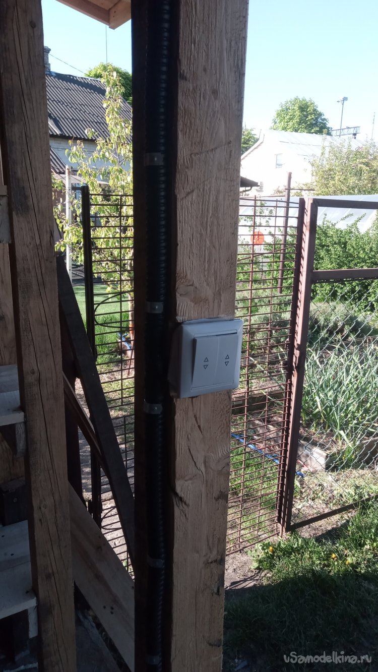 А выключаю, уже зайдя в сарай. И то, что выключатель двухклавишный - тоже хорошо. Вторую клавишу я задействовал на включение внутреннего плафона под навесом.