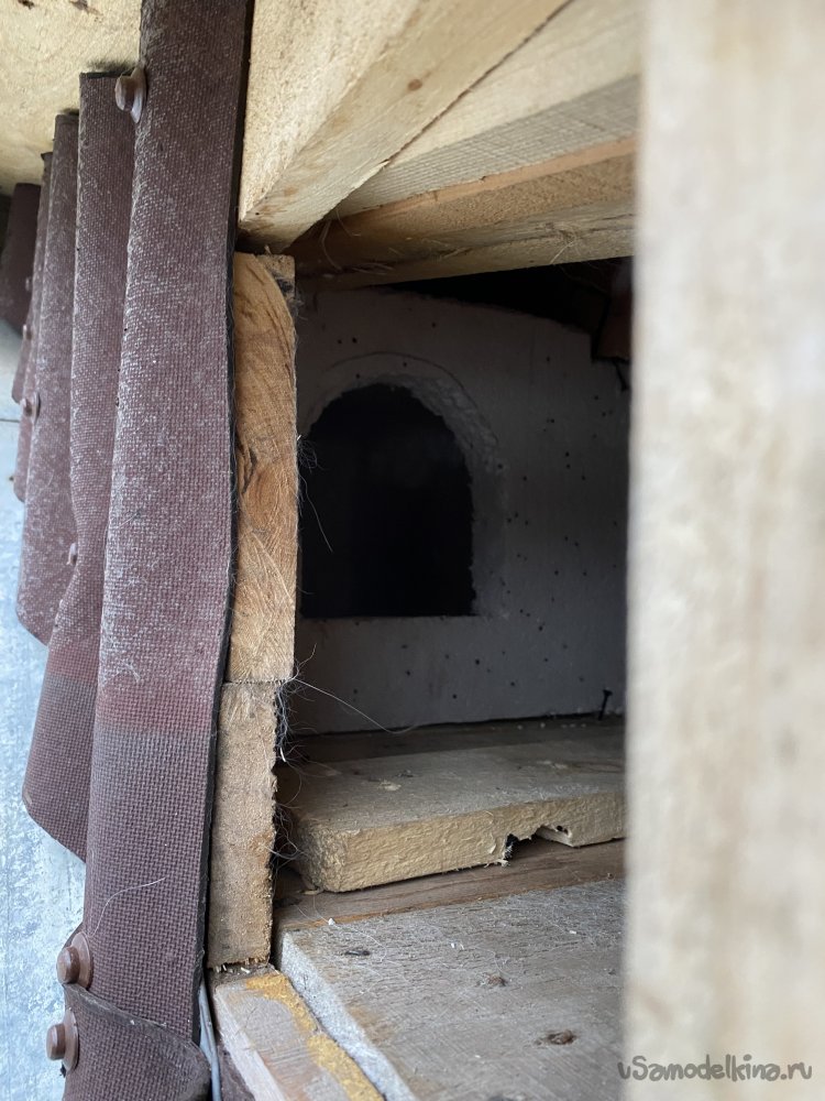 Понимая, что занести туда трёхметровое, развернуть и заложить наверх, не получится, в боковой стене сделал окошко, через которое можно заложить, или достать что-то длинное: