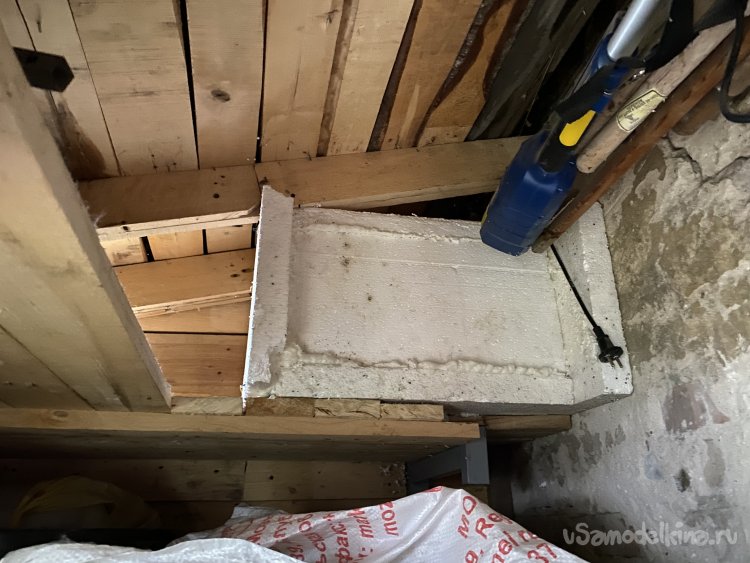 Изначально хотел навесить дверьку. И даже изготовил её.. Но обратил внимание, что там себе облюбовала место для ночлега моя кошка. Она у меня дворовая (в дом обычно, гне заходит). Я к ней прибился давно. (Я не оговорился! Именно я к ней прибился, а не она ко мне! Дело в том, что она уже жила на этом участке, когда появился я, начал приезжать и всё перестраивать, а потом и вовсе поселился рядом с ней! Наблюдаю её уже около восьми лет! Так что, она очень старая! Её явно выбросили за ненадобностью, отвезя в частный сектор. Потому что, во-первых, уж больно она не наглая и "воспитанная", во-вторых, явно стерилизована (котят ни разу не было). Видимо, я появился в её жизни очень вовремя, потому как, в виду полного отсутствия наглости, она бы зимой погибла точно! (Летом она постоянно носит мышей-полёвок, которых ловит в траве на насыпи моста). В пользу того, что она в прошлой жизни, была "квартирной" говорит и то, что в самом начале, когда я увидел её, худющую и перепуганную, у себя в пристройке (это была осень) сразу сходил в магазин и купил кошачьего корма. Только его вид пересилил страх, и она несмело подошла и жадно стала есть... Так вот, бродячие коты редко знают, что такое сухой корм, а она узнала пакет "Китикэта" до того, как я его распечатал! Было видно по реакции.