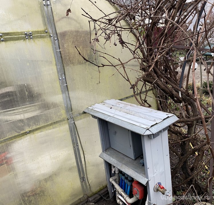 От этого щитка я запитал освещение теплицы, насосы полива ,садовые светильники , и, вот теперь, от него-же проложил кабель к сараю. Остатка того-же кабеля хватило как-раз!
