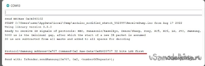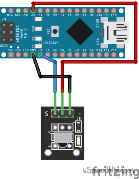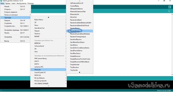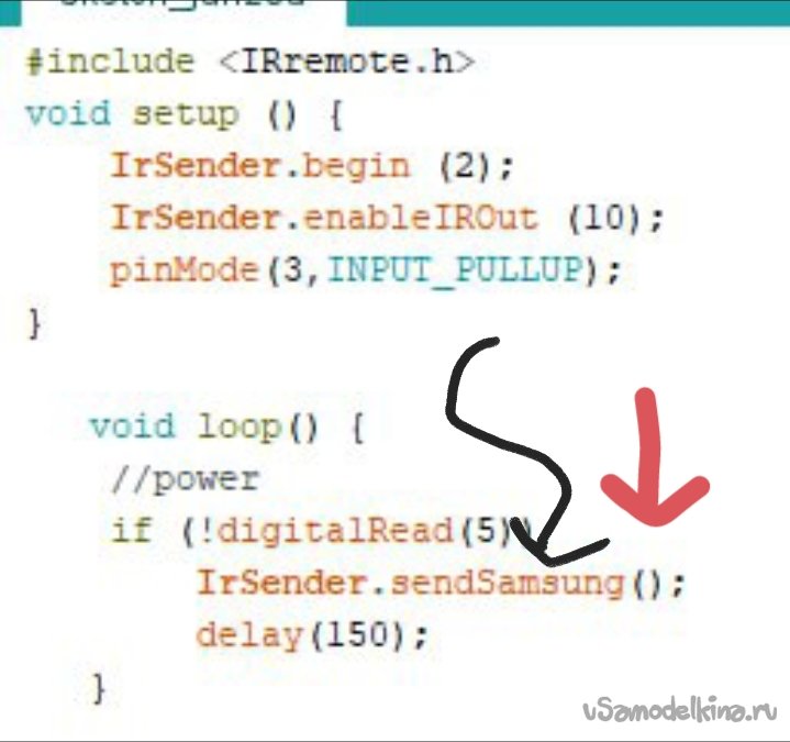 Для того что-бы узнать код кнопки,нужно подклчить ик передатчик по схеме ниже: