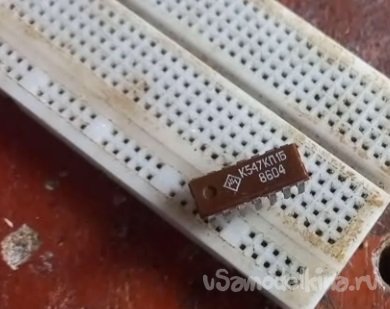 Нашел у себя слегка потрепанную, но рабочую микросхему К547КП1. На вид то, что искал. Четыре ключа, попробовал на одном, микросхему запитал одним аккумулятором, ключ другим и визуально увидел, работает ключ. Но опять невезуха, когда впаял резисторы, они стали жить каждый своей жизнью, то переключались как надо, то забивали на команды и оставались дружно открытыми.
