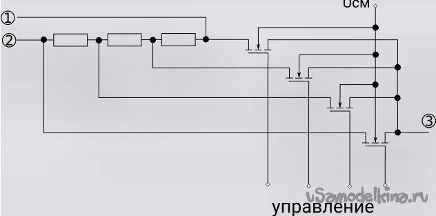 Плавная регулировка оборотов двигателя в моем проекте не нужна, при движении на любой неровности, двигатель будет работать рывками, то ускоряясь, то замедляясь. Чтобы убрать «дребизг» в работе двигателя нужна шаговая регулировка, нужен переменный резистор, собранный из нескольких сопротивлений, спаянных последовательно. Что бы получилось шаговое переключение оборотов на четыре – пять позиций. Ну скажем, первая позиция – началось медленное движение. Следующие позиции – продолжают увеличение движения, а последняя – разгоняет на всю мощность, не давая провалиться вперед наезднику, ну как-то так.