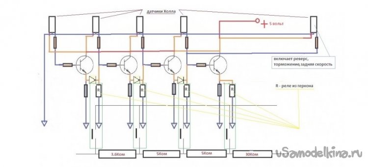 Встал вопрос, как и чем производить переключение сопротивлений. Первую свою версию собрал на датчиках Холла и герконах. Я рассказывал об этом в статье «Электро-механический переменный резистор для ШИМ на NE555».
