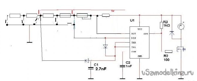 - 3 – ну и конечно запустил двигатель, спаял электронику, в которую добавил ШИМ на НЕ555, да, да, самый обыкновенный, всем широко известный ШИМ.