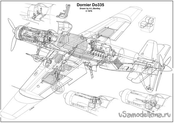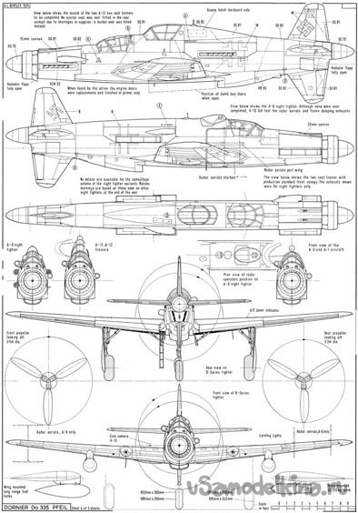 Do-335 – тяжелый немецкий истребитель, истребитель-бомбардировщик времен Второй мировой войны, который довольно часто упоминался в различных источниках как Pfeil (Пфайль – нем. Стрела). Do-335 “Pfeil” являлся самым быстрым поршневым самолетом в истории. Данный самолет обладал более чем революционной конструкцией, хотя подобная компоновка с использованием двух тандемно расположенных двигателей и не являлась совершенно новой