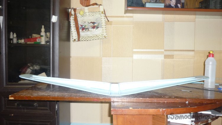 После монтажа корневых нервюр и лонжеронов , нижняя обшивка крыльев получила нужный мне V угол.