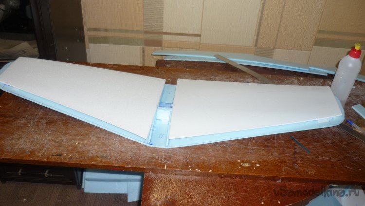 Выкраиваю заготовки для внешней обшивки крыльев. И монтирую.