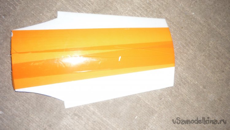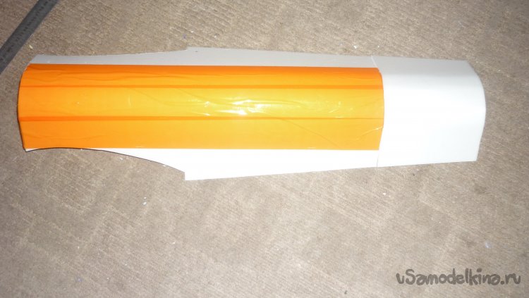 Выкраиваю заготовки внешней обшивки фюзеляжа для носовой части модели, и перед началом изгиба обтягиваю заготовки цветным скотчем.