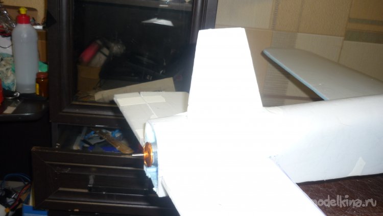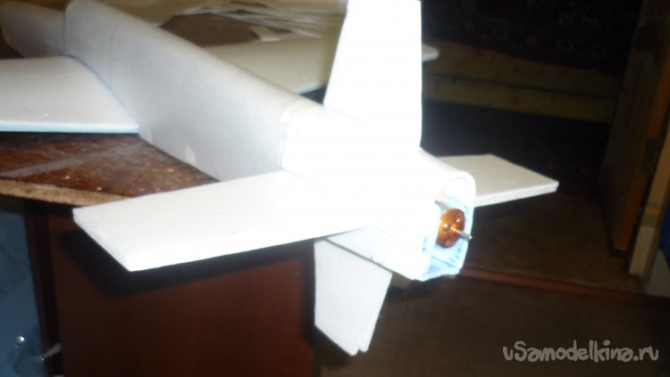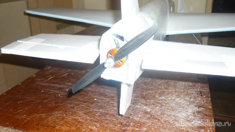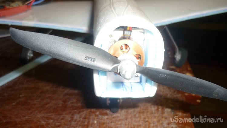 На мотор в хвостовой части модели поставил другой винт, соответствующий мотору .