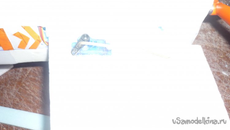 Навешиваю руль высоты. Синхронизатор сделал из «,5 мм. проволоки.
