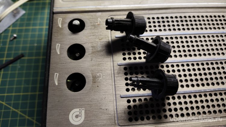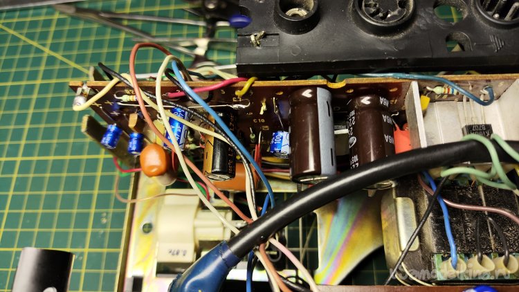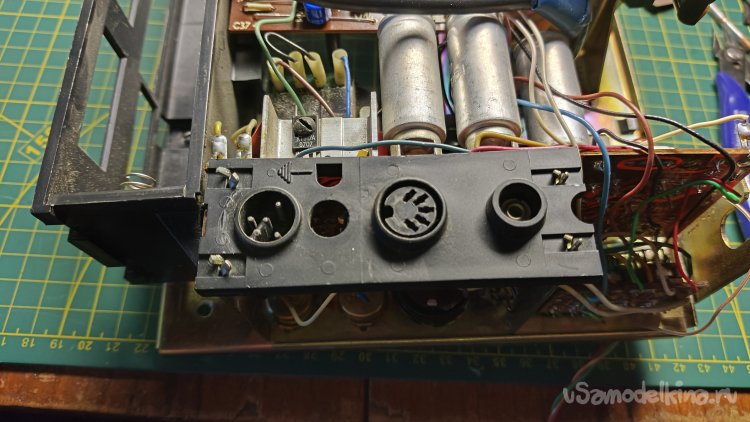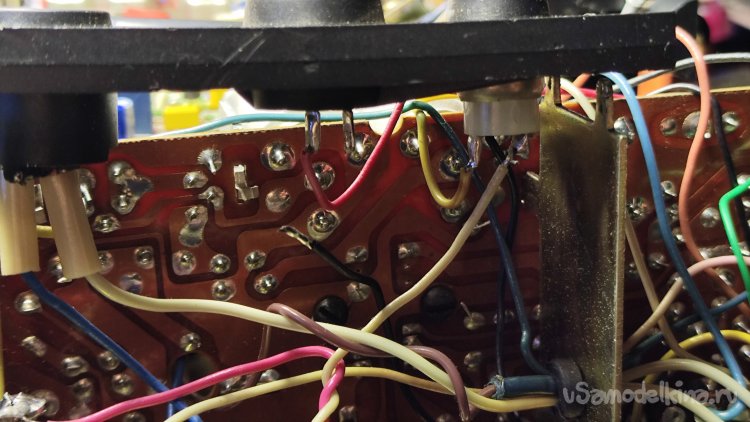 Все переменные резисторы закреплены пластмассовыми гайками. Гайки плотно одеваются на ось резистора, что дает небольшое усилие при регулировке. Интересное решение, которое я редко где встречал.