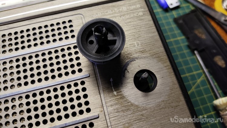 Протер от грязи заднюю панель, помыл ручки. Краска на ручке настройки частоты немного облезла после мойки с мылом. Подкрасил её "временно" маркером. Полностью собрал радиоприемник. Можно слушать и наслаждаться поиском различных радиостанций.