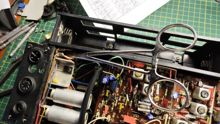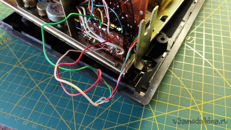 На разъеме выхода на магнитофон черный провод немного короткий. Отпаял провод.