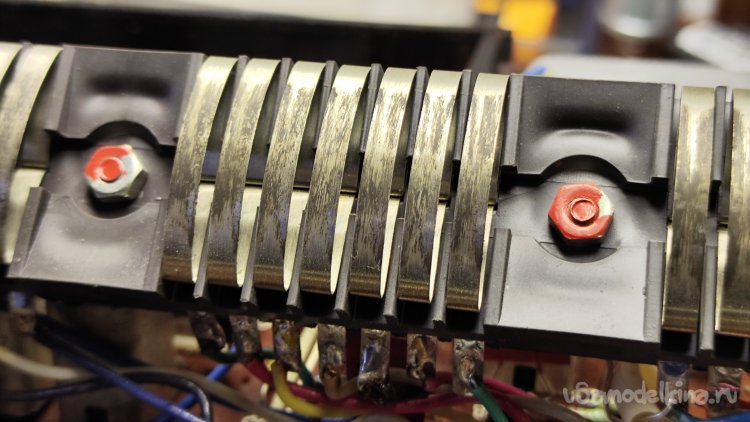 Отпаивать не стал, длина проводов позволяет это не делать. Резисторы полностью не разборные. Подлезть для чистки и смазки получилось только куском ветоши. Смочил ветошь спиртом, протер резистор, затем нанес на ветошь капельку вазелина и опять протер.