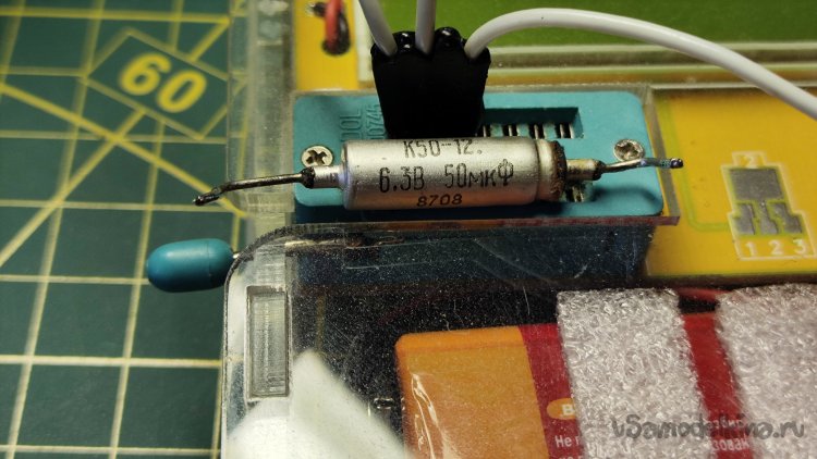 Конденсатор С24 50 мкФ х 6,3 В стоит в питании блока КСДВ. В наличии есть красивые конденсаторы на 100 мкФ. Вполне подходят и длины ножек хватает. Устанавливаю.