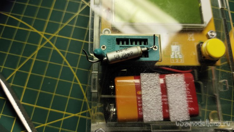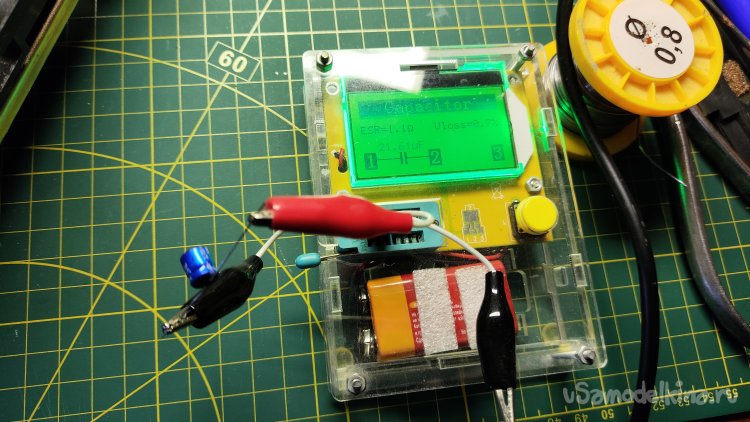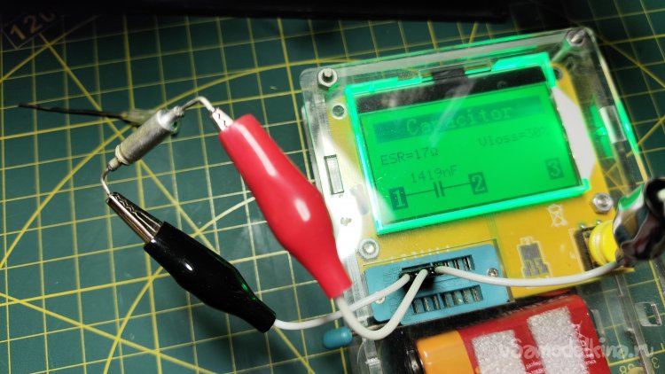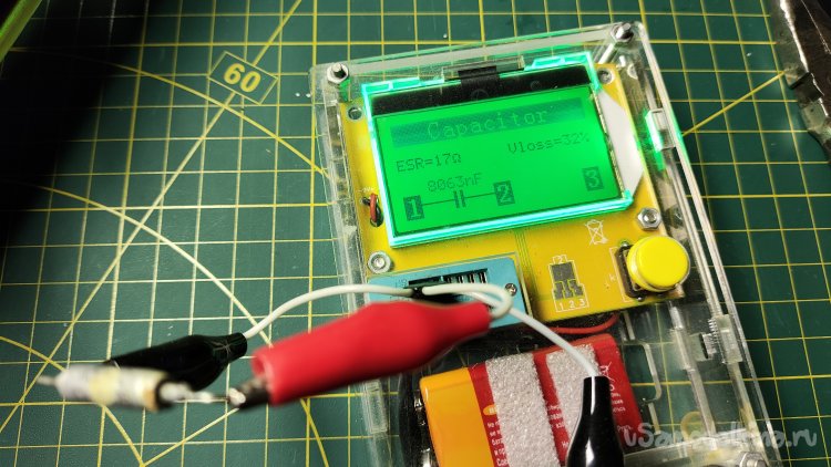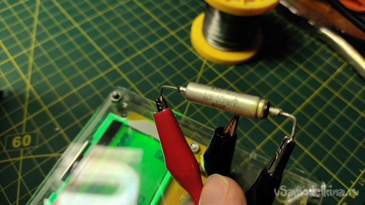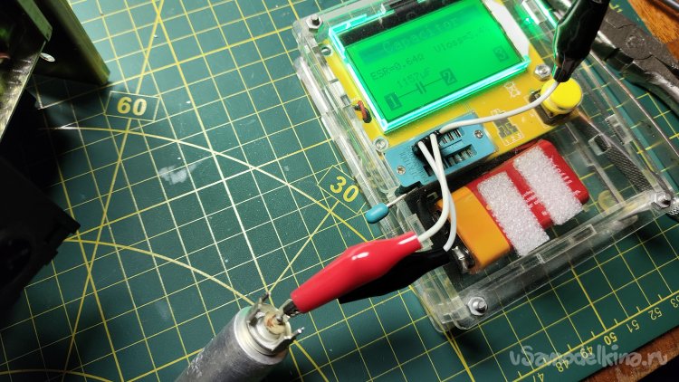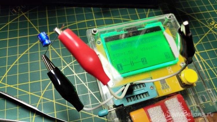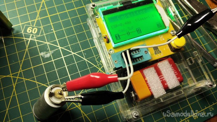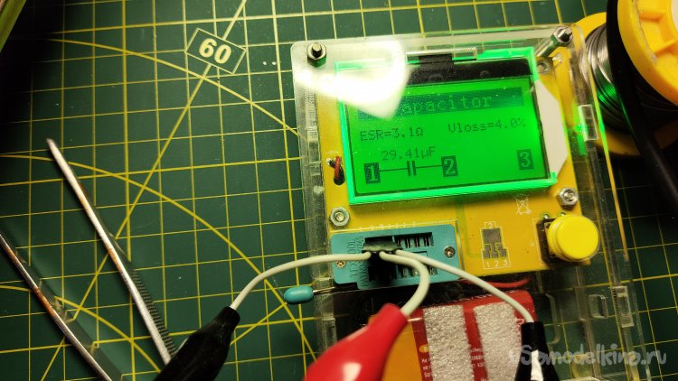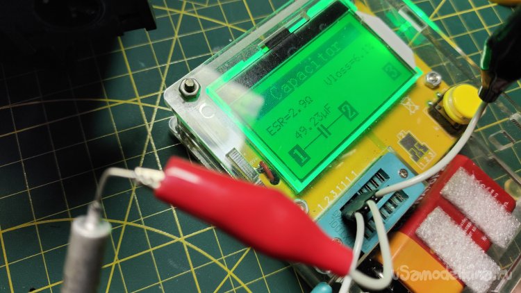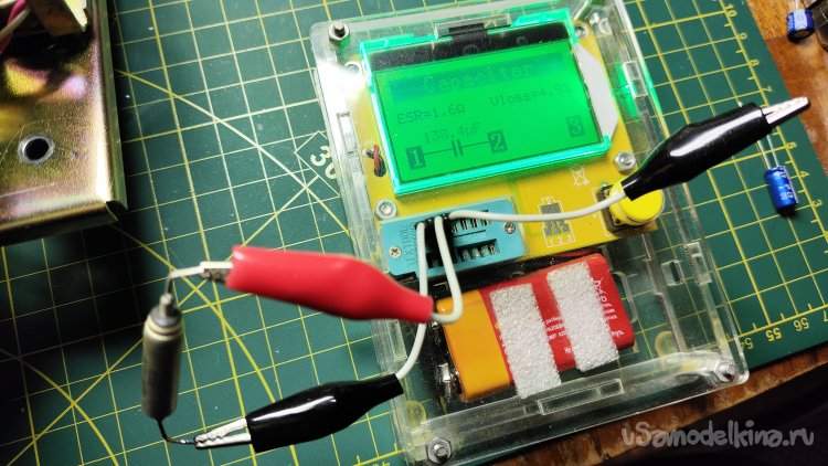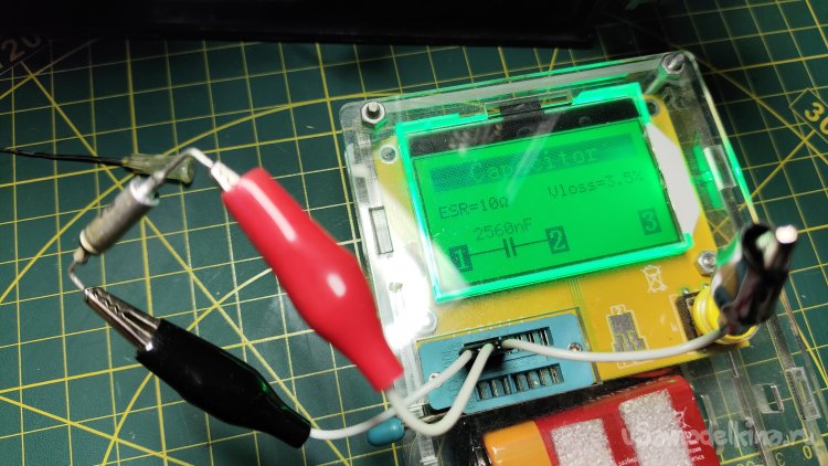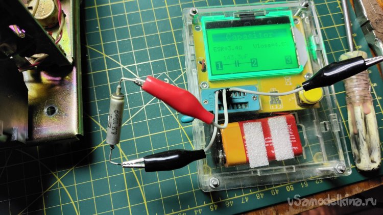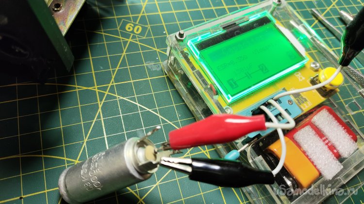 Проверяю оставшийся конденсатор. Он стоял в питании сразу после диодного моста. Емкость занижена в два раза.
