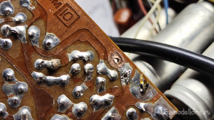 Пробую отмыть посеребренные контакты на платах галетного переключателя. Отмываются, но темные следы все равно остаются. Пока оставляю эти контакты, надо подумать, чем их лучше чистить.