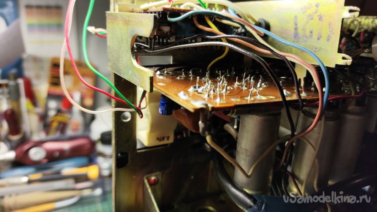 Для проверки и замены электролитов плату РЧ-ПЧ надо поднимать, разворачивать. Провода на блоке УКВ этому мешают.