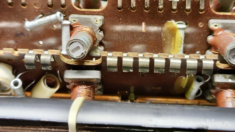 А это контакты галетного переключателя диапазонов. Судя по черному налету, они посеребренные. Окисленные контакты мешают нормальной работе, необходима чистка.