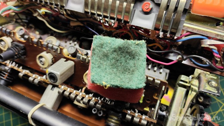 Осталось почистить контакты плат галетного переключателя блока КСДВ. Для чистки пробую абразивную сторону кусочка кухонной поролоновой губки. Контакты хорошо очищаются.