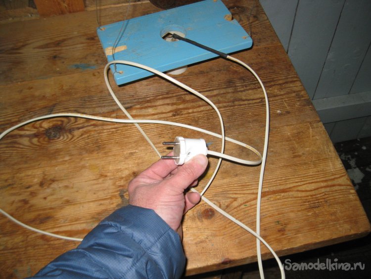 Затем к патрону я подсоединил провод сечением 0,7 мм. кв., (вполне достаточно для лампы данной мощности), примерно два метра длиной с вилкой.