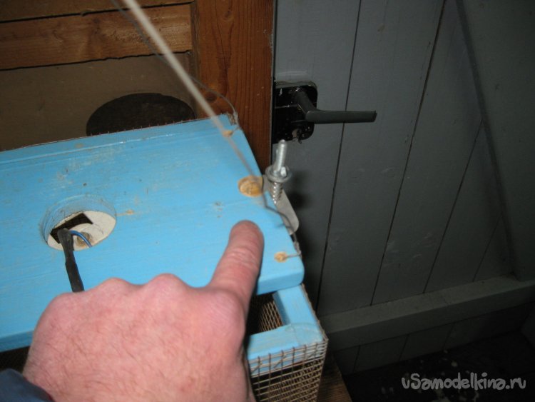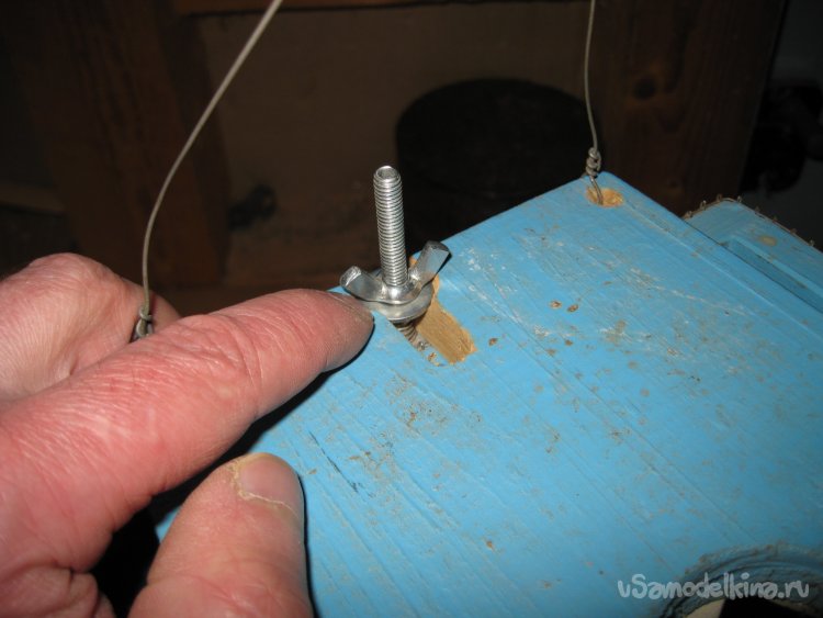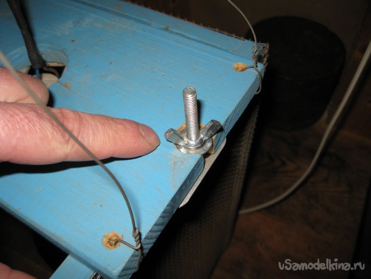 Первое время, я использовал для этого полипропиленовый шпагат, а затем, прикрутил тонкую стальную проволоку. Так получилось намного надежнее.