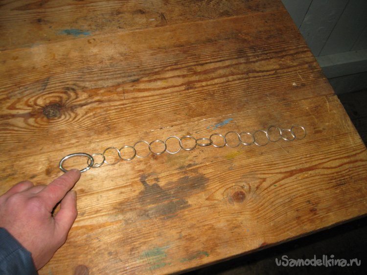 Для этого, из пружинных колец собирается цепочка, которая в данном случае состоит из 15-20 колец.
