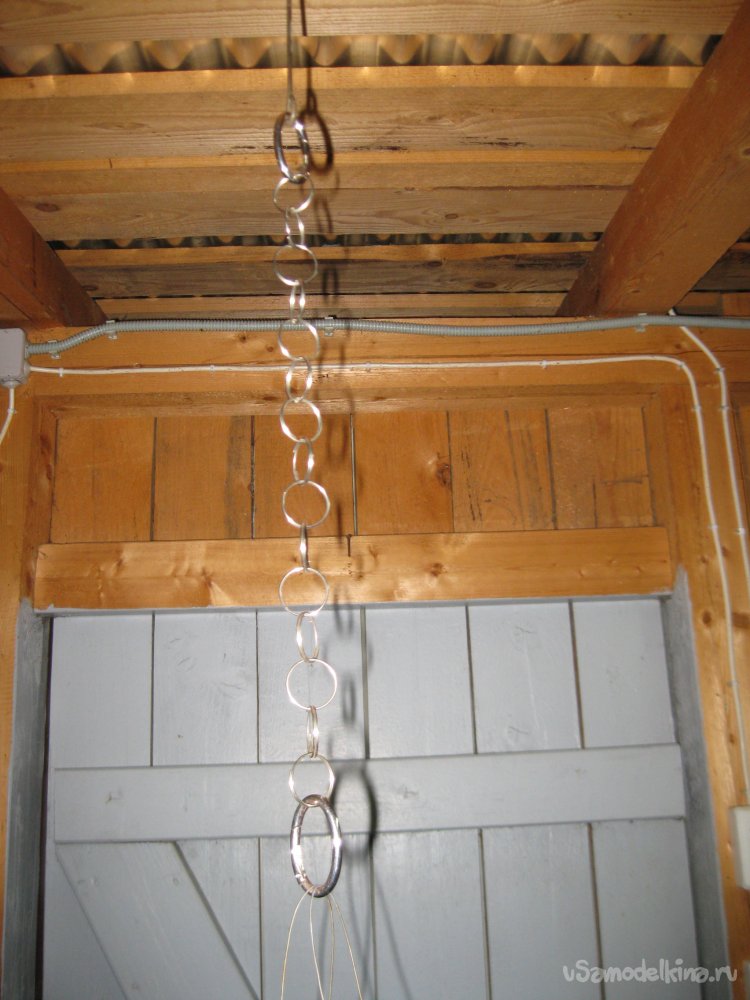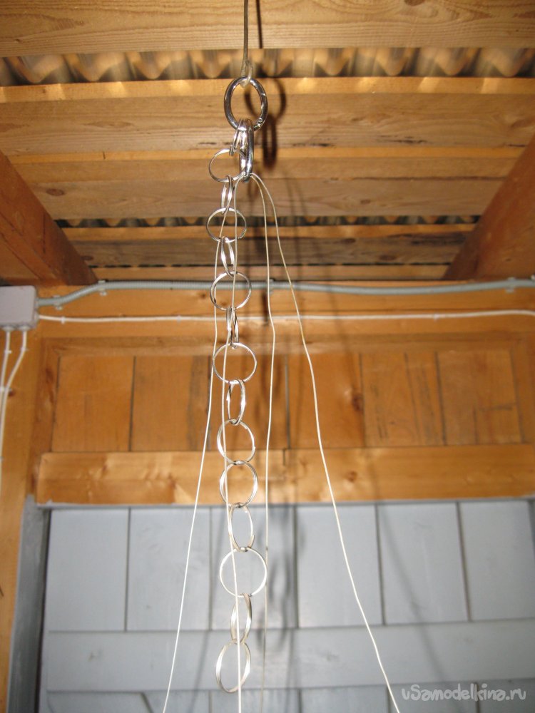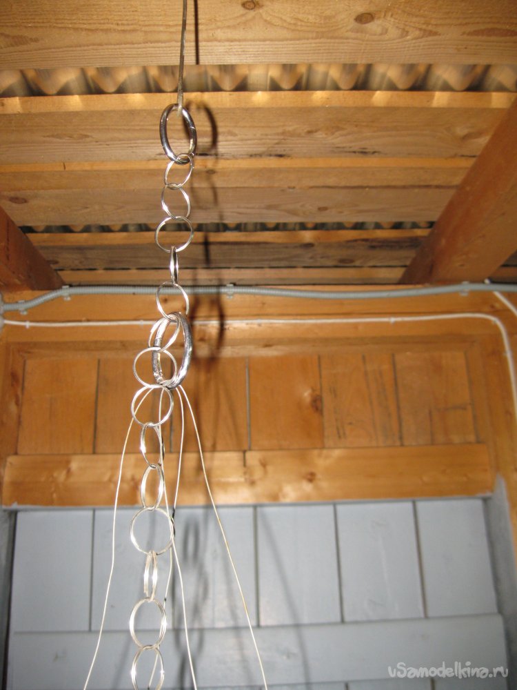 Таким образом, переставляя карабин по звеньям цепочки, мы можем поднимать или опускать держатель с лампой и регулировать его высоту. При помощи такой цепочки, мы можем максимально поднять или опустить держатель на 50-60 см.